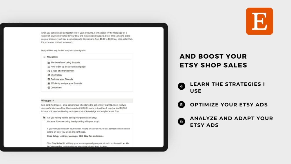 If you're frustrated with your current results on your Etsy Ads or you're just someone interested in selling on Etsy and willing to use them, you are on the right page. Etsy Ads campaign, Strategies, Optimization and more... This Ebook will cover everything you need to know to run successful Etsy Ads campaign.